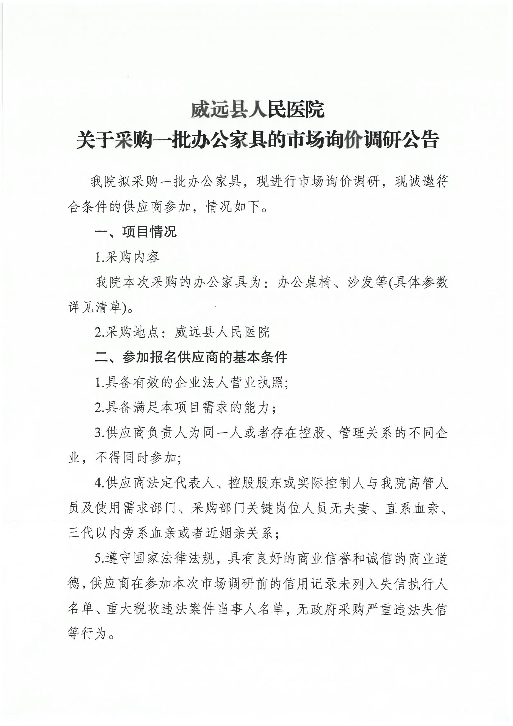 威远县人民医院关于采购一批办公家具的市场询价调研公告